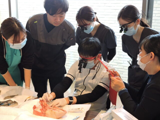 また歯科医師向けには、豚の下顎を使った歯周外科治療の実習も行われ、実際の手技を体験しながら学べる貴重な時間となりました😊✨❗️